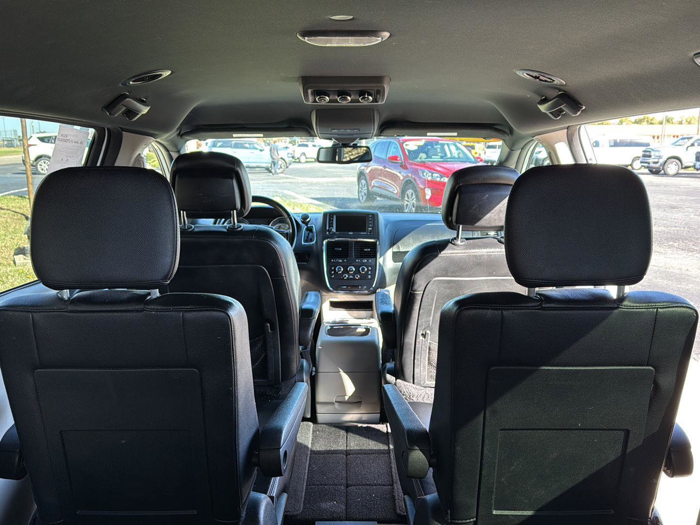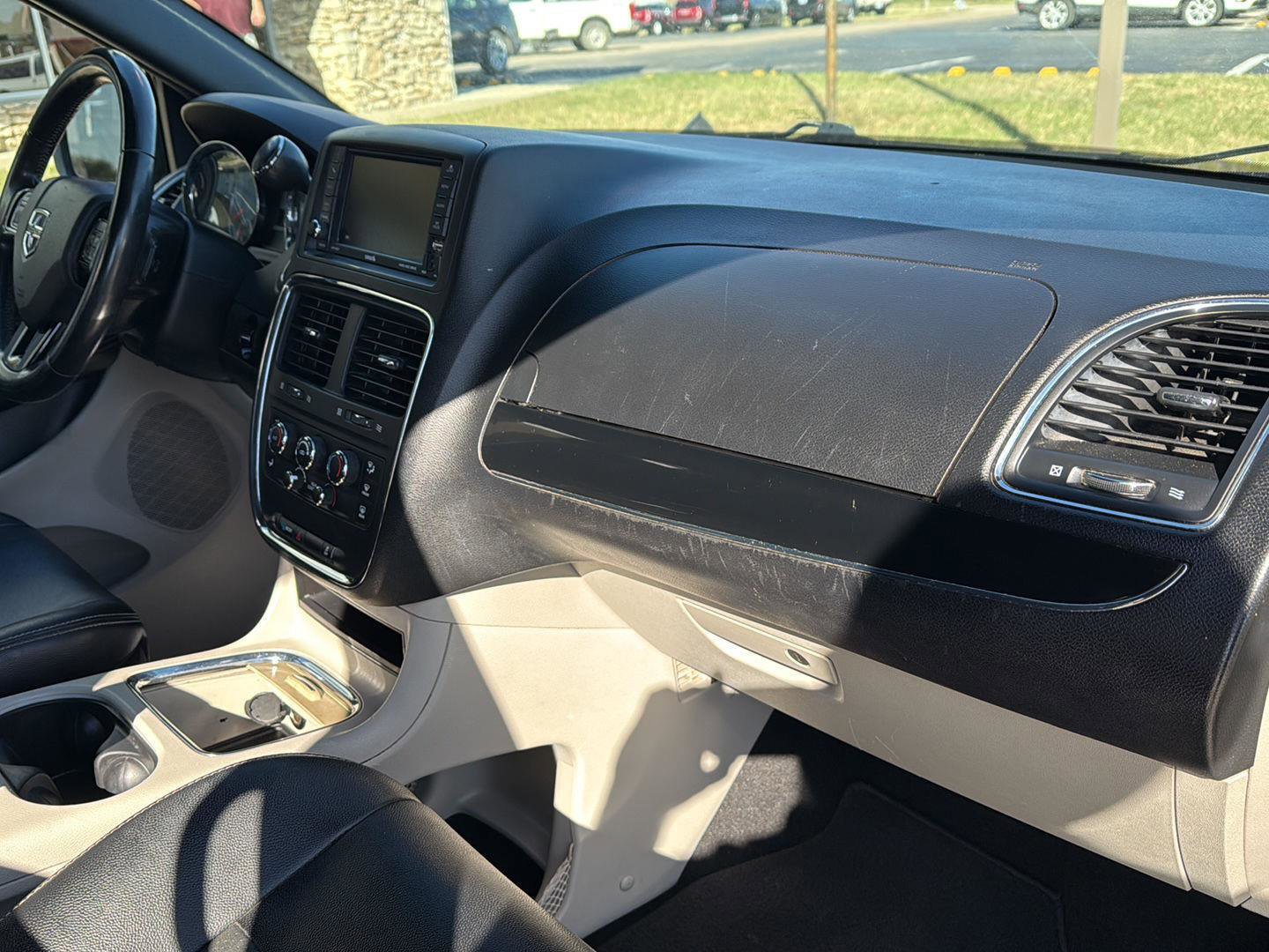 The 2019 Dodge Grand Caravan SXT features a Regular Unleaded V-6 3.6 L/220 engine and is equipped with notable optional equipment such as a leather-wrapped shift knob and premium interior accents. It also includes automatic headlamps and a black finish instrument panel bezel. The Uconnect® Voice Command with Bluetooth® enhances connectivity, providing convenience for the driver. This model is fitted with 17-inch x 6.5-inch Tech Silver Aluminum Wheels and 225/65R17 BSW Touring Tires, complemented by power-heated mirrors with manual fold-away and body-color door handles.